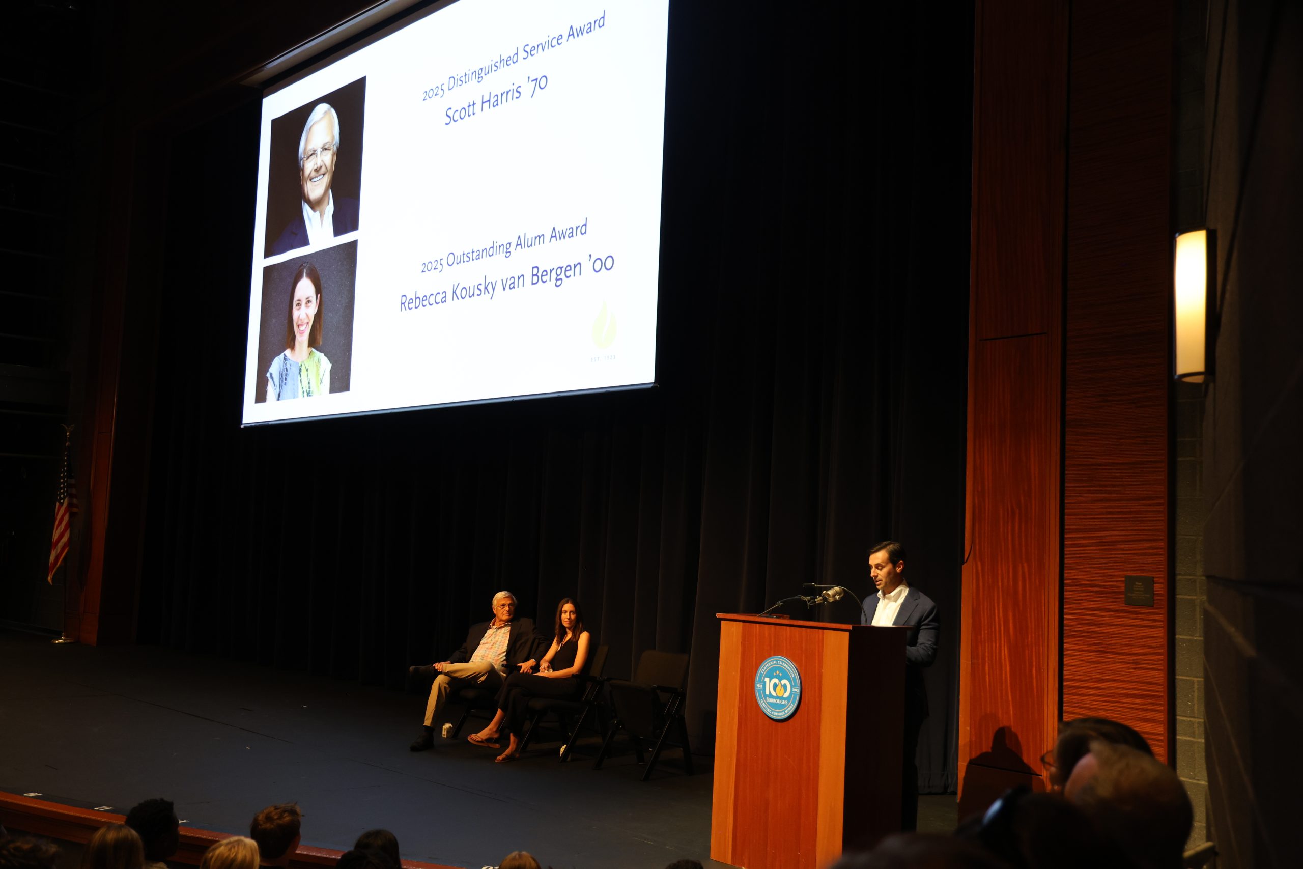 Each year, the JBS Alumni Association opens Alumni Weekend with the Alumni Awards Assembly, a tradition that honors graduates whose lives and work embody the mission of Burroughs. This year, we proudly recognized Scott Harris ’70 and Rebecca Kousky van Bergen ’00 for their extraordinary leadership and service, with introductions by Alumni Board president Joey Mathes ’05.