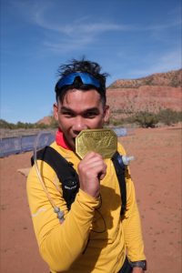 Gideon Harianja ’23, orthopedic surgery resident PGY-3, ran the Zion 100 Mile Ultra Marathon April 12–13. He said 24-hour hospital call shifts helped train him because ultras require stamina and mental fortitude in the face of exhaustion. He wrestled with self-doubt at mile 70, convinced he would quit. He cried as he crossed the finish line. It took Harianja 35 hours.