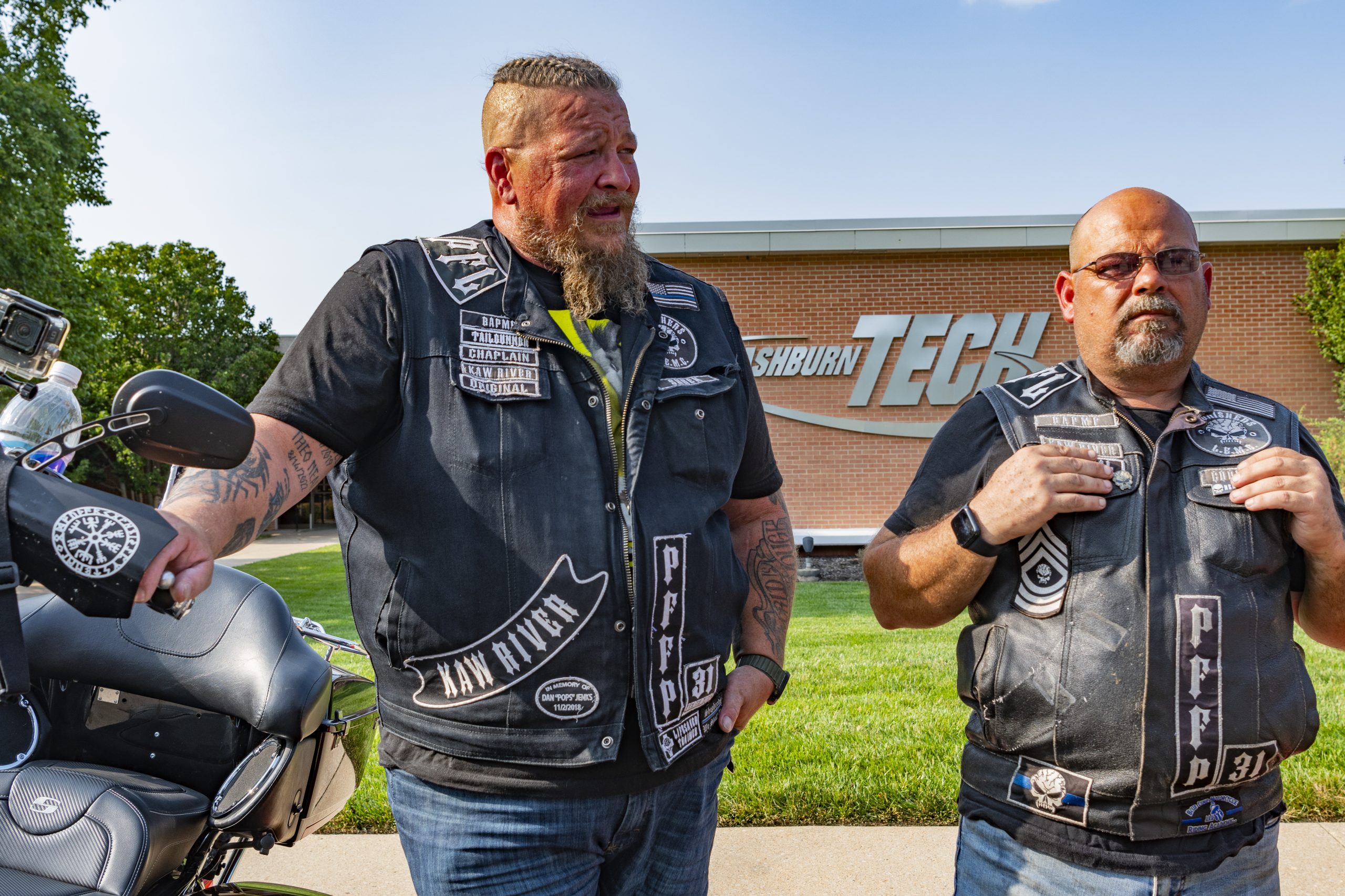 Just after 5 p.m.on Tuesday, July 23, a group of bikers pulled into the parking lot of Washburn Institute of Technology. Clad in motorcycle jackets adorned with patches and skulls, riding loud Harleys and assorted bikes and circling up by the front entrance, they made quite an impression as they were met by staff members of Washburn Tech and the Washburn University Alumni Association and Foundation.