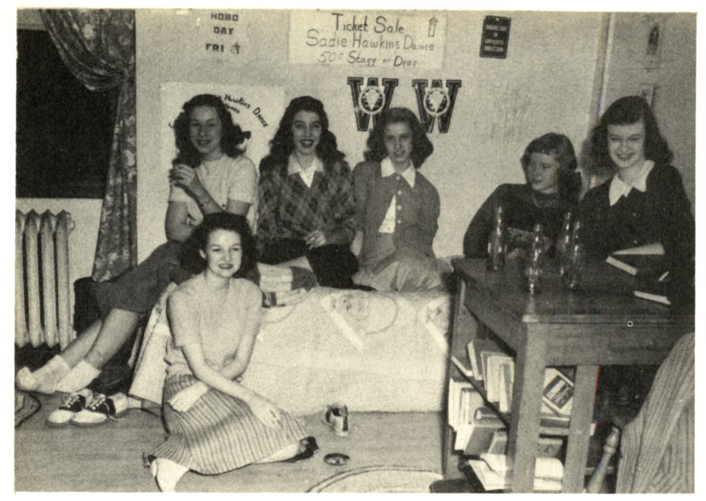 A photo in the 1948 Kaw yearbook shows one of the dorm rooms in Benton Hall.