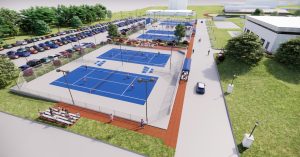 (The latest renderings of the Washburn Tennis Complex upgrades show the new lighting, seating, landscaping and two championship courts.)