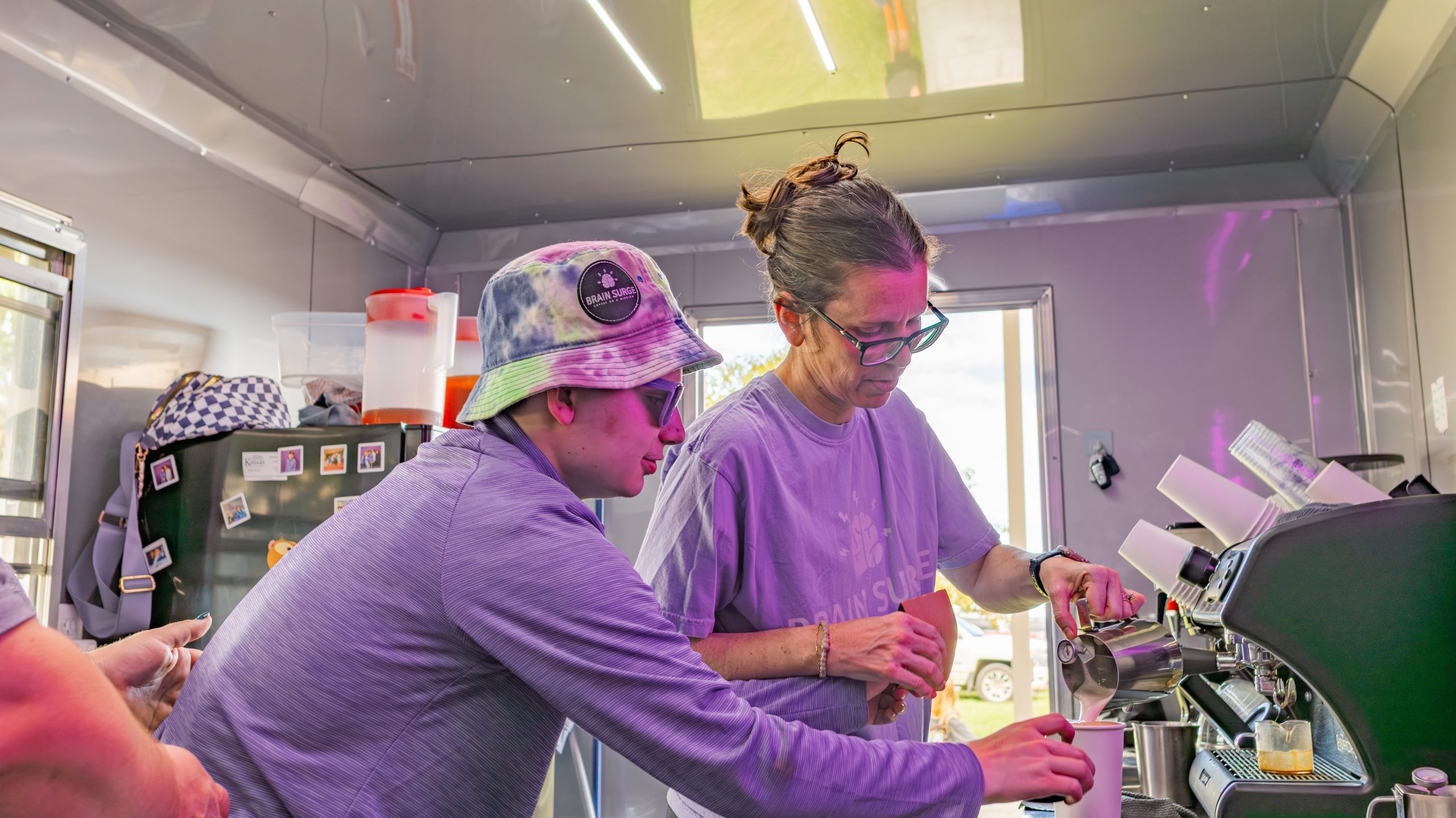Within 24 hours the family started working on the project that would become Brain Surge. Based out of Hiawatha, Kansas, the coffee trailer is volunteer run. While Brock needs a caretaker all hours of the day – including during work hours – he still contributes to every event they attend. And despite being a full-time speech pathologist, Graham dedicates herself to Brain Surge as well, traveling for regional and national events.